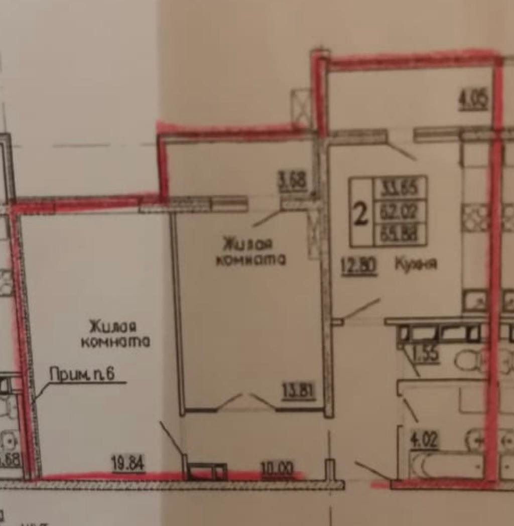 Квартира общей площадью 62,2м2, кухня 13м2, 2 просторные комнаты 19,8м2 и 13,8м2.