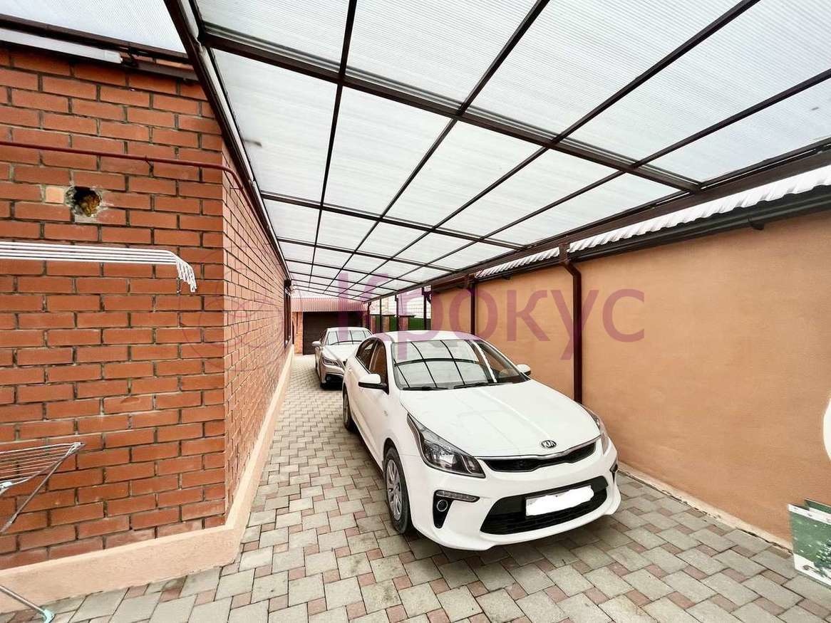 Парковочные места на 2 авто под навесом. Весь двор в плитке, установлено видеонаблюдение по периметру.